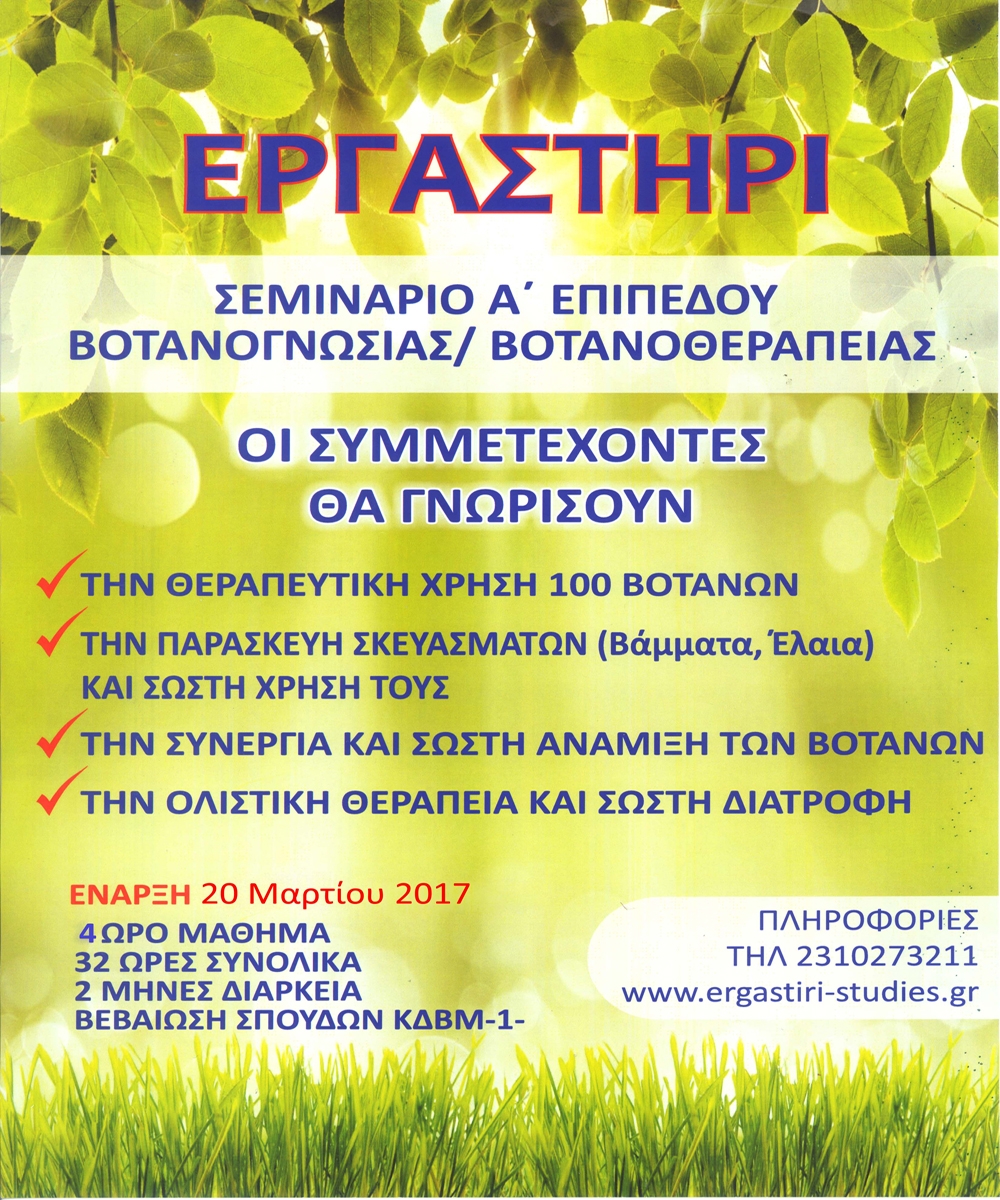 Μετά τα πρώτα σεμινάρια και βλέποντας την μεγάλη ανταπόκριση δημιουργήσαμε και δεύτερο τμήμα σεμιναρίων. Στα πλαίσια της διά βίου μάθησης και της διαρκούς προσπάθειας μας για την προώθηση και ορθή γνώση των βοτάνων, δημιουργήσαμε σε συνεργασία με το εργαστήρι κύκλο σεμιναρίων.